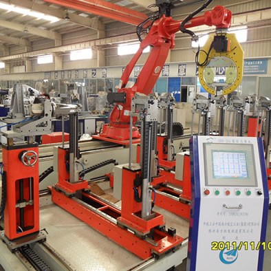 采用意大利柯瑪機(jī)器人控制,適合于線圈或線棒的絕緣包帶;全數(shù)字8軸控制,其中機(jī)器人本體采用滑軌移動(dòng)以適用于大規(guī)格線圈或線棒的包帶。該設(shè)備既可包扎定子線圈也可包扎轉(zhuǎn)子線圈。